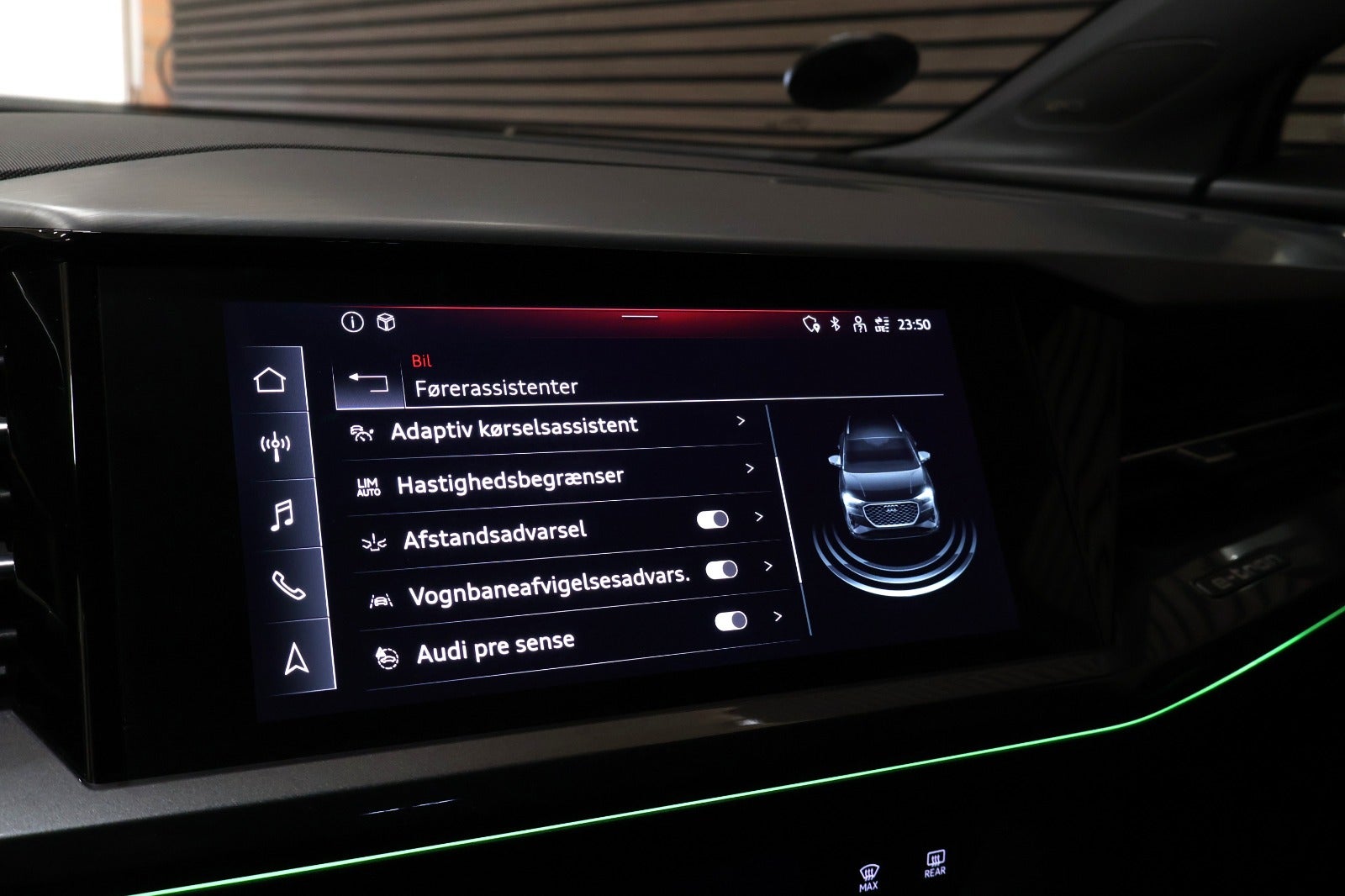 Kørecomputer, multifunktionsrat, højdejust. forsæder, splitbagsæde, digitalt cockpit, læderrat, bagagerumsdækken, højdejust. førersæde, alufælge, 19" alufælge, el-klapbare sidespejle, led kørelys, led baglygter, el-sidespejle, el-klapbare sidespejle m/varme, automatgear, aircondition, fuldaut. klima, centrallås,fartpilot, adaptiv fartpilot, sportssæder, fod betjent bagklap, el betjent bagklap, fuld led forlygter, fjernlysassistent, navigation, skiltegenkendelse, bakkamera, apple carplay, android auto, parkeringssensor (bag), parkeringssensor (for), ambiente belysning, vognbaneassistent, nøglefri tænding, udv. temp. måler, 4x el-ruder, elektrisk parkeringsbremse, fjernb. centrallås, varmepumpe, nøglefri adgang, sædevarme, el-ruder, musikstreaming via bluetooth, håndfrit til mobil, usb-c tilslutning, airbags, automatisk lys, dæktryksmåler, isofix, automatisk nødbremsesystem,